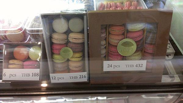 因為現在已經變成根據不同口味的馬卡龍 而有不同等級的價位 而且是最便宜$20銖/顆 最貴竟要$45銖/顆
