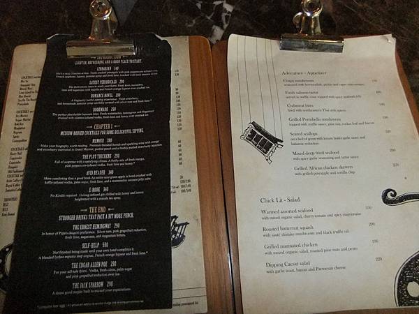 店家的菜單Menu The Book Shop除了本身是酒吧以外 也有提供相當精緻的餐點