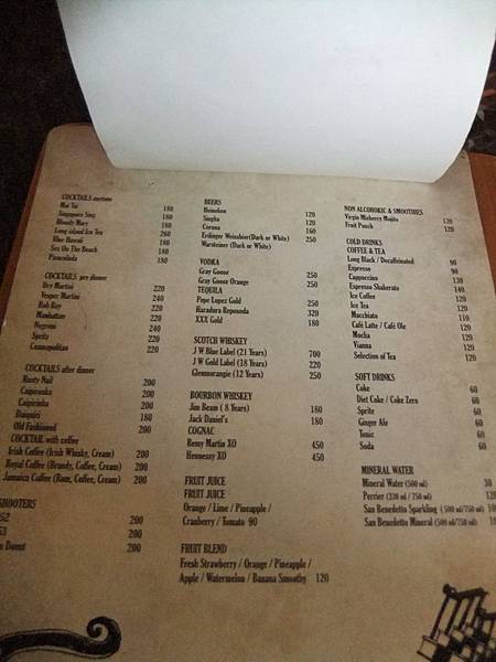 酒味很重 也不錯喝 一杯要價$220銖 但還要再另加10%服務費 & 7%稅金ㄛ~~
