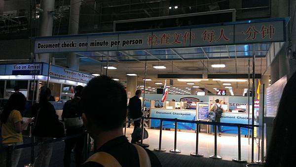若是已經事先在台灣就辦好泰簽的觀光客 往護照查驗(Immigration)指示走 前去排隊檢查護照通關領行李