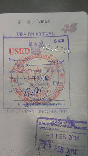 這就是落地簽證Visa on Arrival VIP是在1/2/2014入境 停留有效期限到15/2/2014 給15天
