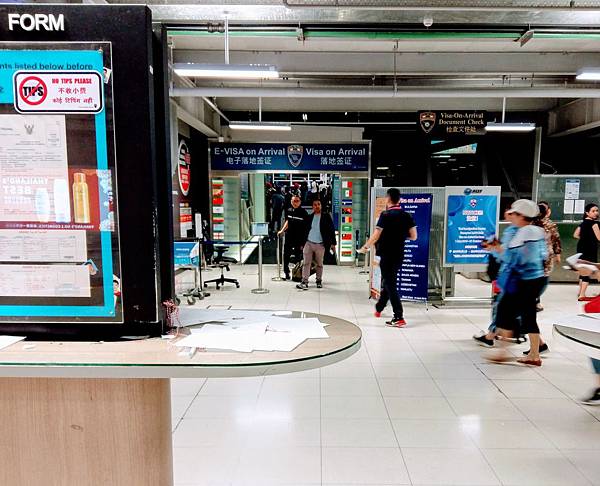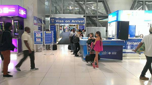 在還沒進入移民關的外面旁邊 會看到 "Visa on Arrival" 落地簽證申辦櫃檯 旅客要先去那裏辦理才能入境