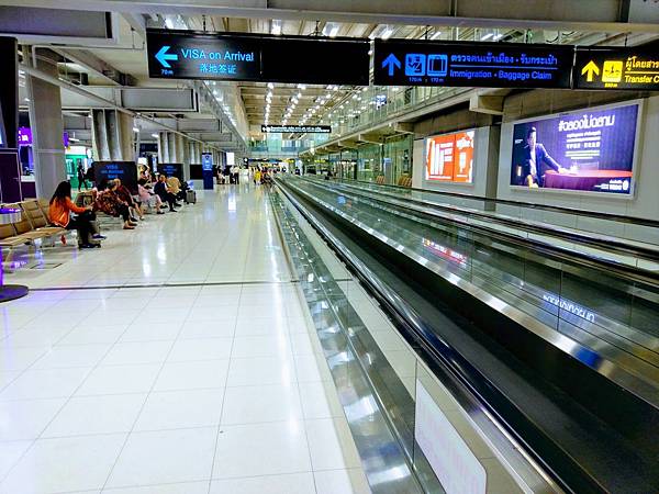 抵達泰國素汪納普新機場後 下飛機走出登機通道後 通常都還得要走上一大段路才能到移民關護照查驗處