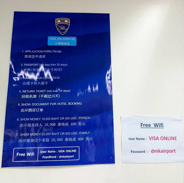 (資訊補充 : 1.自2016/9/27起 在泰國機場申辦落地簽簽證費用將從每人一千銖調漲至每人二千泰銖