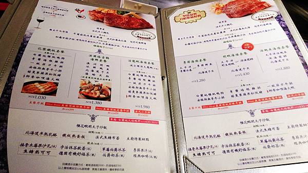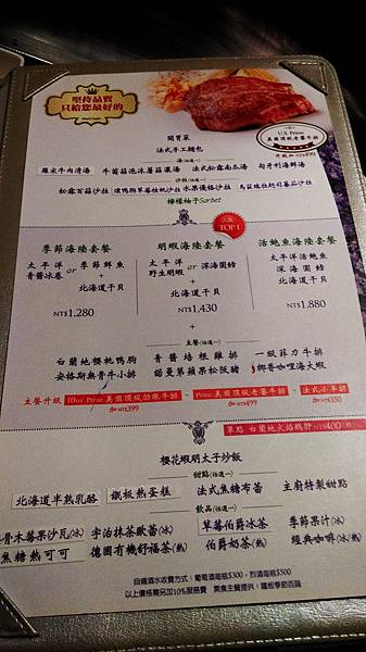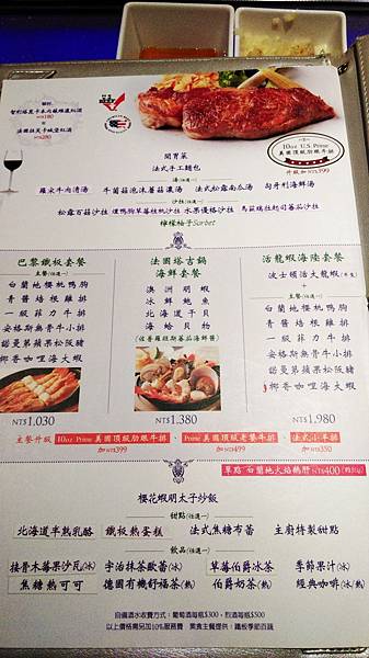 價位依主菜高檔 & 豐富程度從$1030到$1980不等(需另加10%服務費) 大家可根據預算多寡 & 喜好來選擇