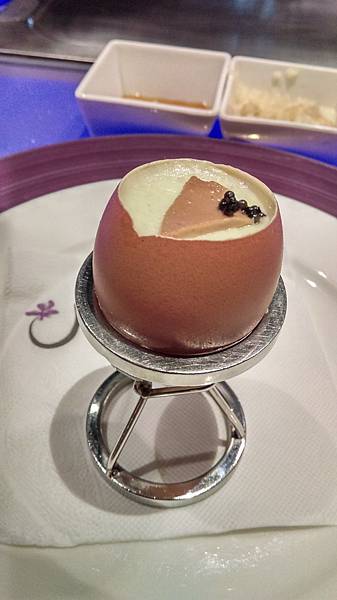 除此之外 前菜還有一道松露蒸蛋 除了蒸蛋上面有高檔的鵝肝 & 魚子醬之外 在蒸蛋裏面還有添加松露醬