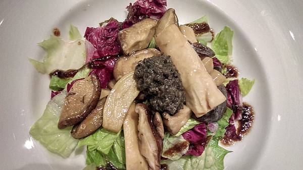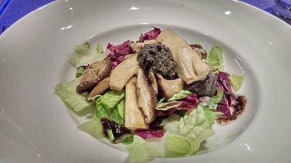 生菜沙拉上的松露 & 各種菇類也都是廚師在鐵板上所親自料理擺盤呈現出來的