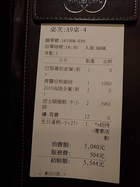 當天我們點了三份套餐 含服務費後的價位總共是$5544 真的不便宜 但確實是好吃~~
