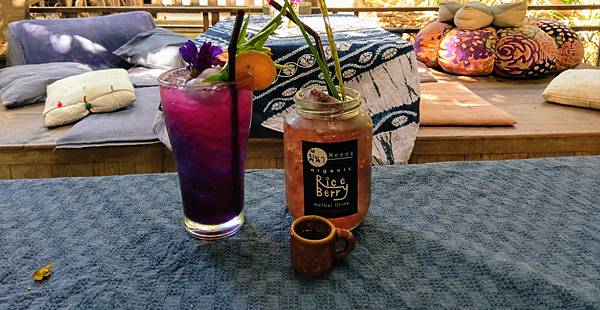 當天我們各點了一杯檸檬龍眼蝶豆花冰茶 & 餐廳特調飲品RiceBerry