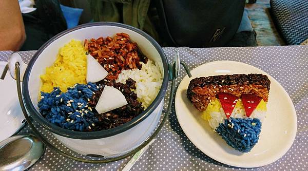 之前首訪時所吃的 以泰國國旗為概念的三色泰國飯已經夠厲害了 沒想到還有進化版的五色飯~~