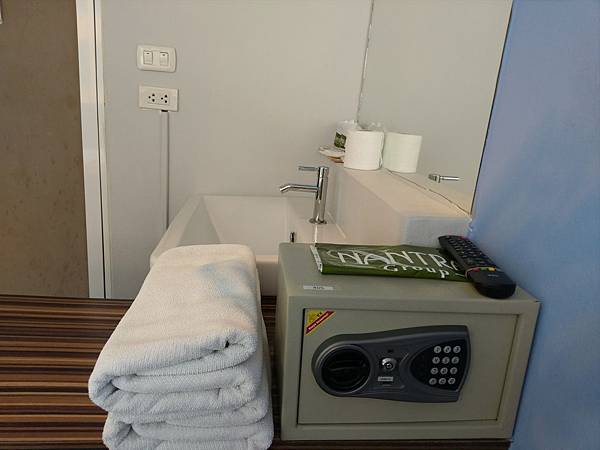 除了電視機下方有小冰箱以外 Nantra Ekamai 還有提供保險箱 就平價旅館來說還蠻少見的