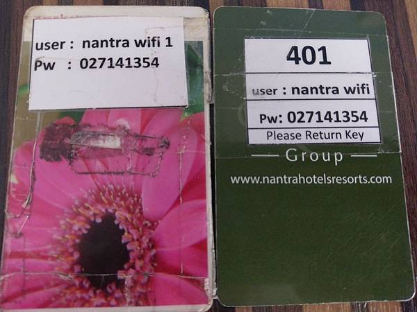 辦理入住手續後所拿到的房卡 & Wi-Fi 密碼