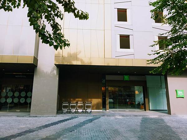二間酒店出入口有區隔開 左邊是Novotel Bangkok Sukhumvit 4 右邊則是 ibis Styles Sukhumvit 4