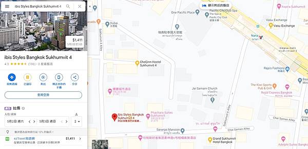 顧名思義 ibis Styles Bangkok Sukhumvit 4位於Sukhumvit Rd. 4巷內(地圖紅色游標處)