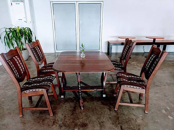 並刻意使用二手復古風傢俱和咖啡廳所身處之所在地無形中做一連結
