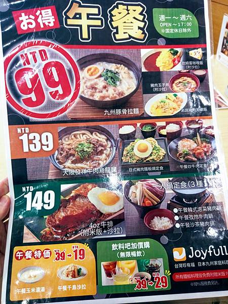 Joyfull 以 "最貼近顧客的餐廳" 自詡 並使用安心食材 餐廳營運強調餐點品質 待客真誠 & 環境清潔這三項