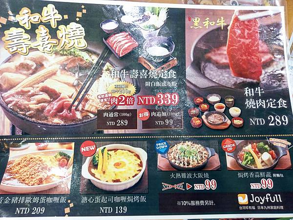 儘管以平價為主打 Joyfyull 也會不時提供較為高檔的新品菜色 像是和牛壽喜燒 & 燒肉 讓顧客依需求選擇