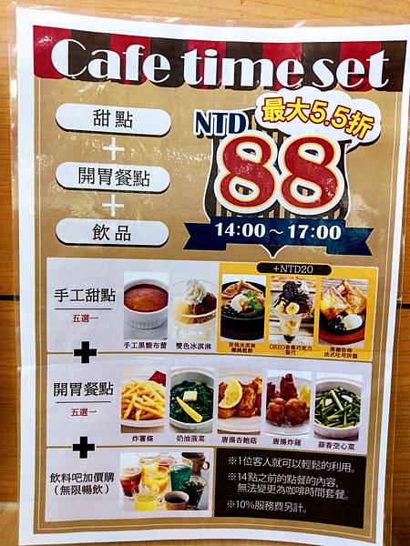不只如此 在較為冷門的14:00-17:00用餐時段還有推出Cafe Time Set
