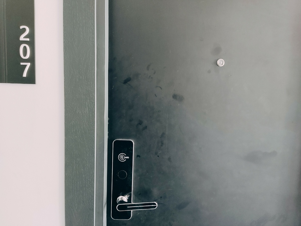 感應房卡 拉下把手 推開房門