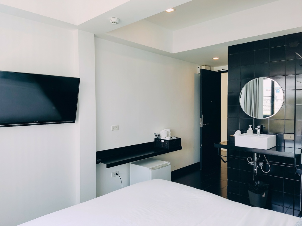 和旅店一樣 客房依舊是黑白二色為主的裝潢基調 顯得簡潔俐落 並帶有時尚前衛氣息