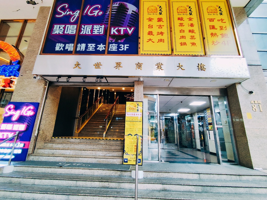 新大戈壁蒙古烤肉西門旗艦店開在大世界商業大樓四樓位置(地址 : 台北市萬華區成都路81號4樓) 一樓是星聚點KTV