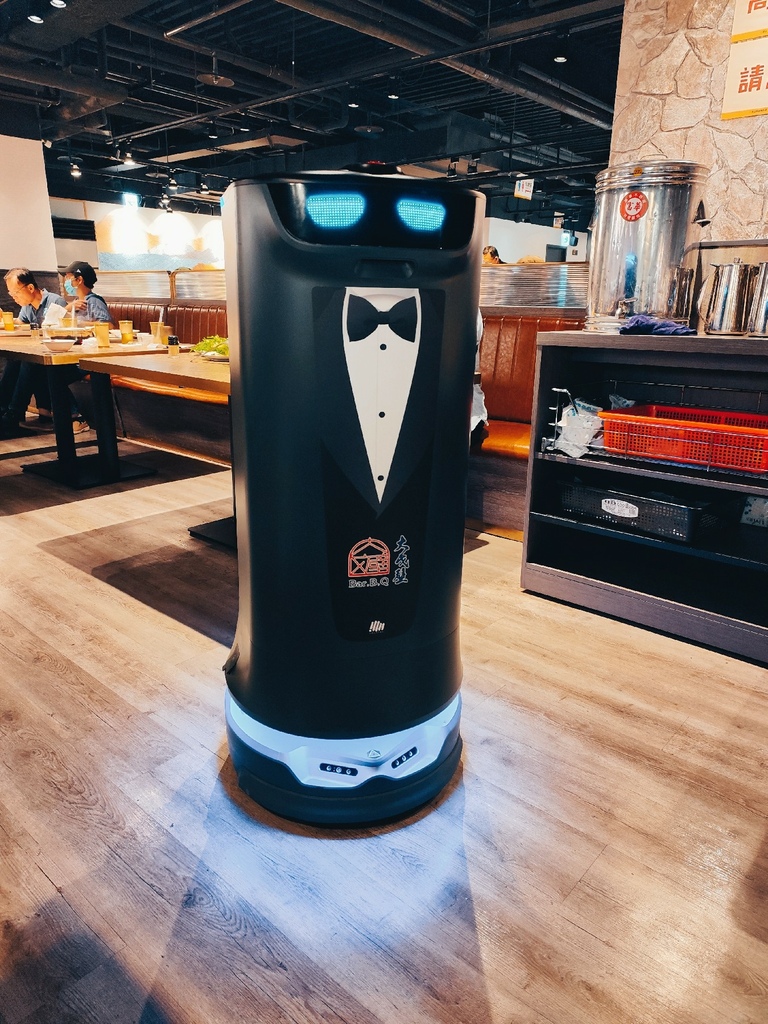 還有先進的送餐機器人 可將吃完的碗盤放進去讓它回收