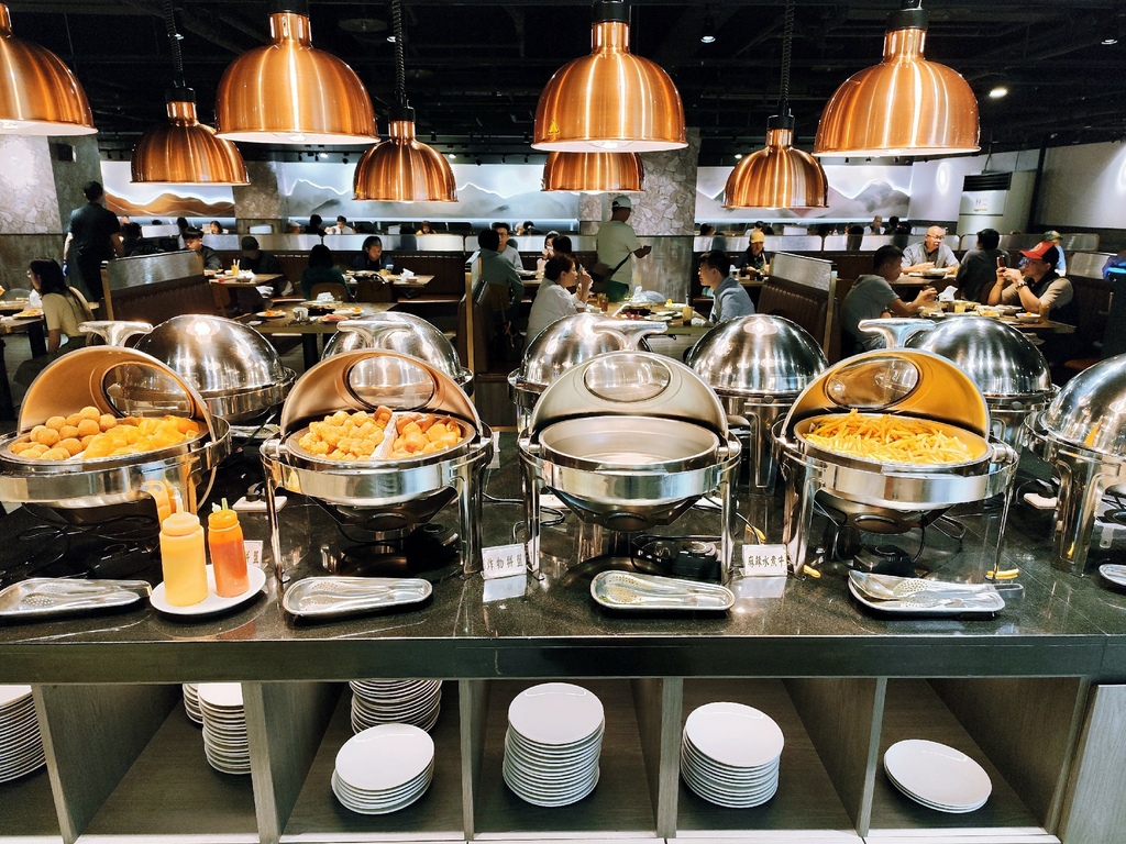 有麻辣鴨血豆腐 新竹貢丸 橙汁雞腿肉 薯條 炸雞米花 銀絲卷 以及主廚料理酸菜魚 & 水煮牛等菜色