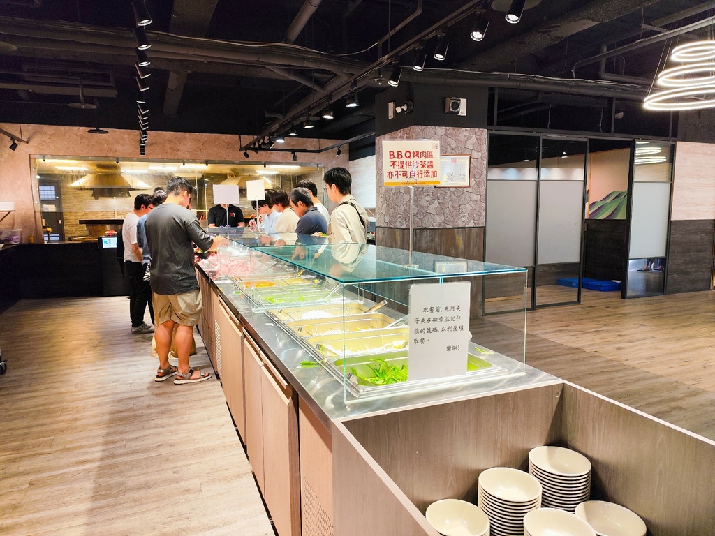 新大戈壁蒙古烤肉除了招牌蒙古烤肉外 還有提供近百種食材的自助吧 像是數十樣火鍋配料