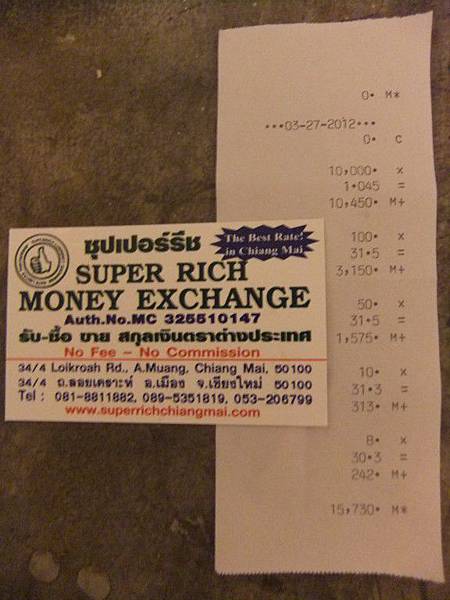 不過平平都是叫做Super Rich 各地區分店的匯率還是會稍微有點不同ㄛ~~ 曼谷所給的匯率大都會比清邁好一點點