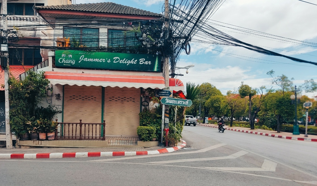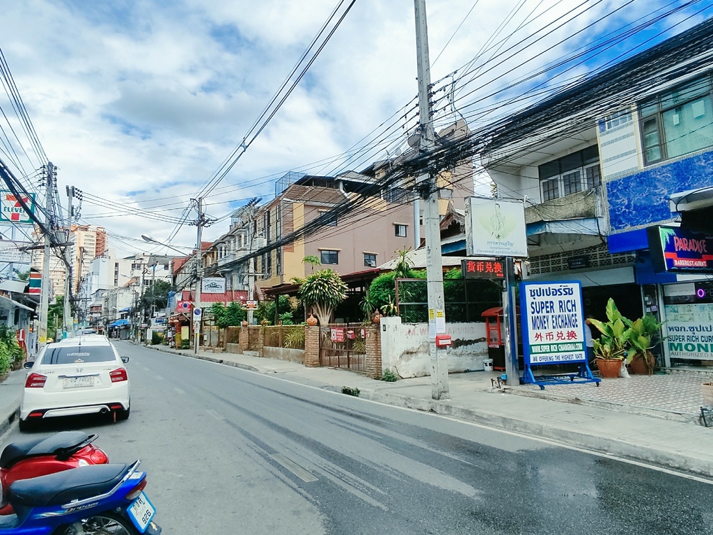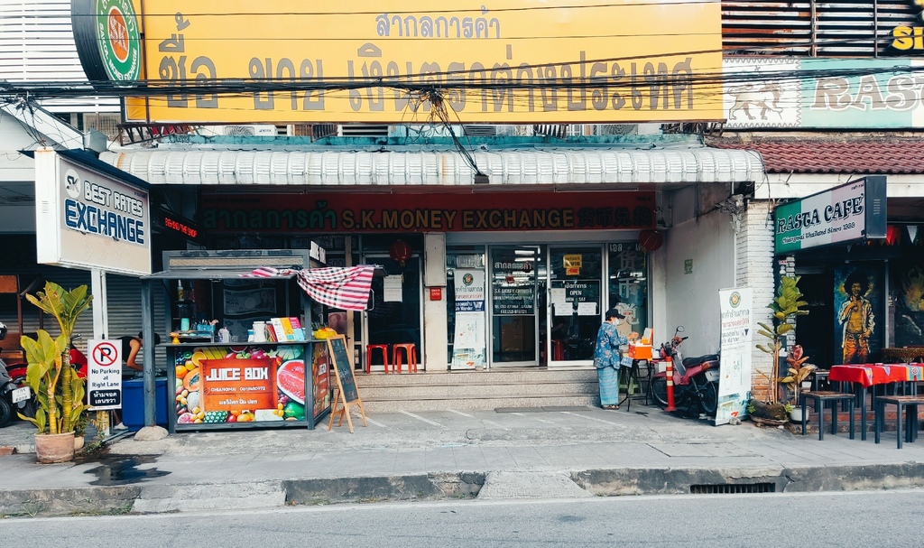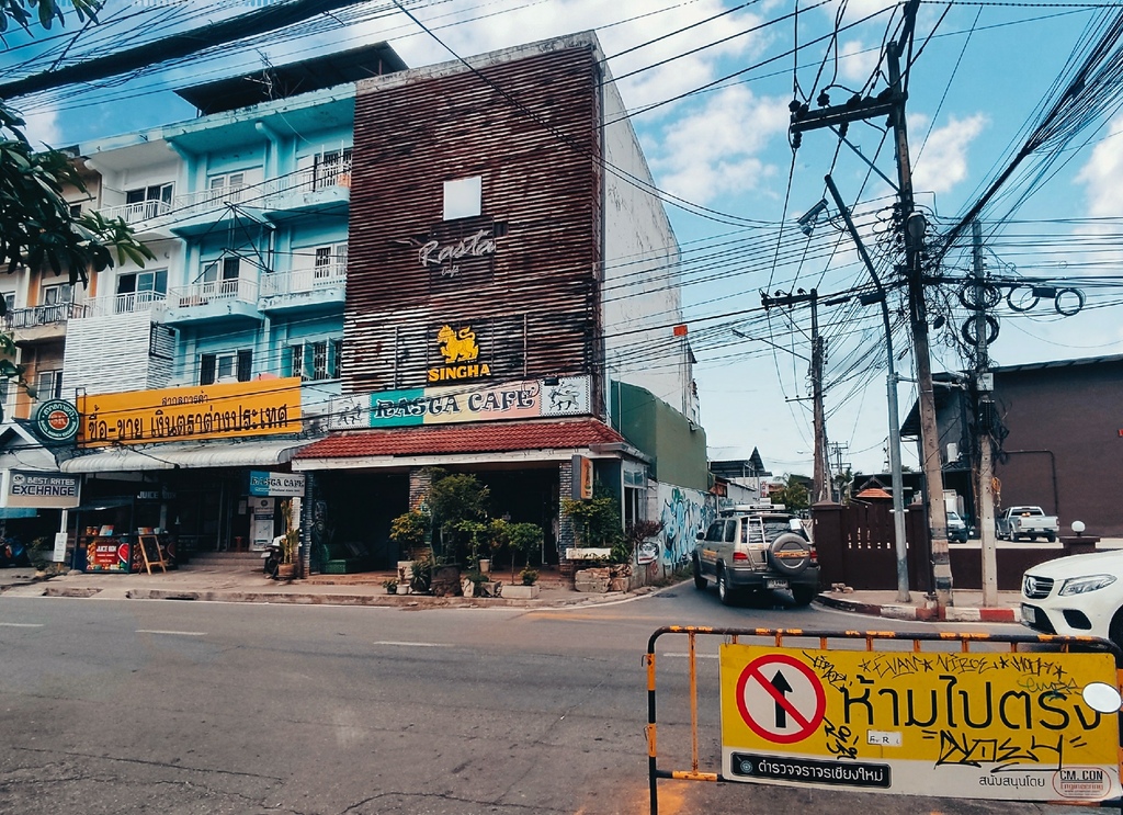交叉口處的店面是一間名為"Rasta Cafe"的餐廳 而在緊鄰餐廳隔壁的店面便是SK Exchange(สากลการค้า)兌換所之所在