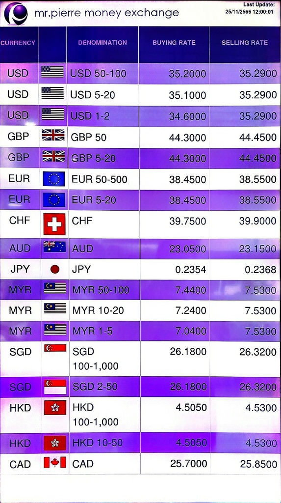 當天的美金兌換成泰銖的匯率(要看Buying Rate)是35.20 再次提醒 記得帶大鈔來兌換 給的匯率比較好
