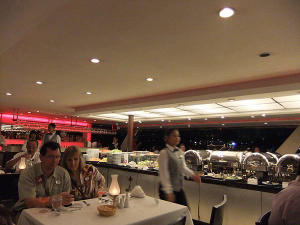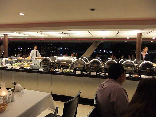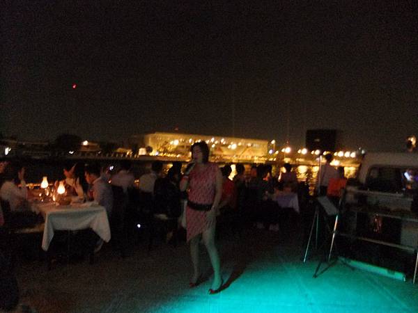 於是就在輕快悠揚的音樂聲+歌手賣力的演出 以及昭披耶河沿岸美景+船上Buffet 美食相輔相乘之下