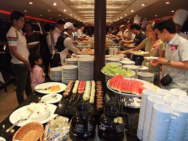 Buffet 取餐區就在船身正中央的位置 左右二邊的菜色都一樣 這樣才不會所有人全都擠在一起